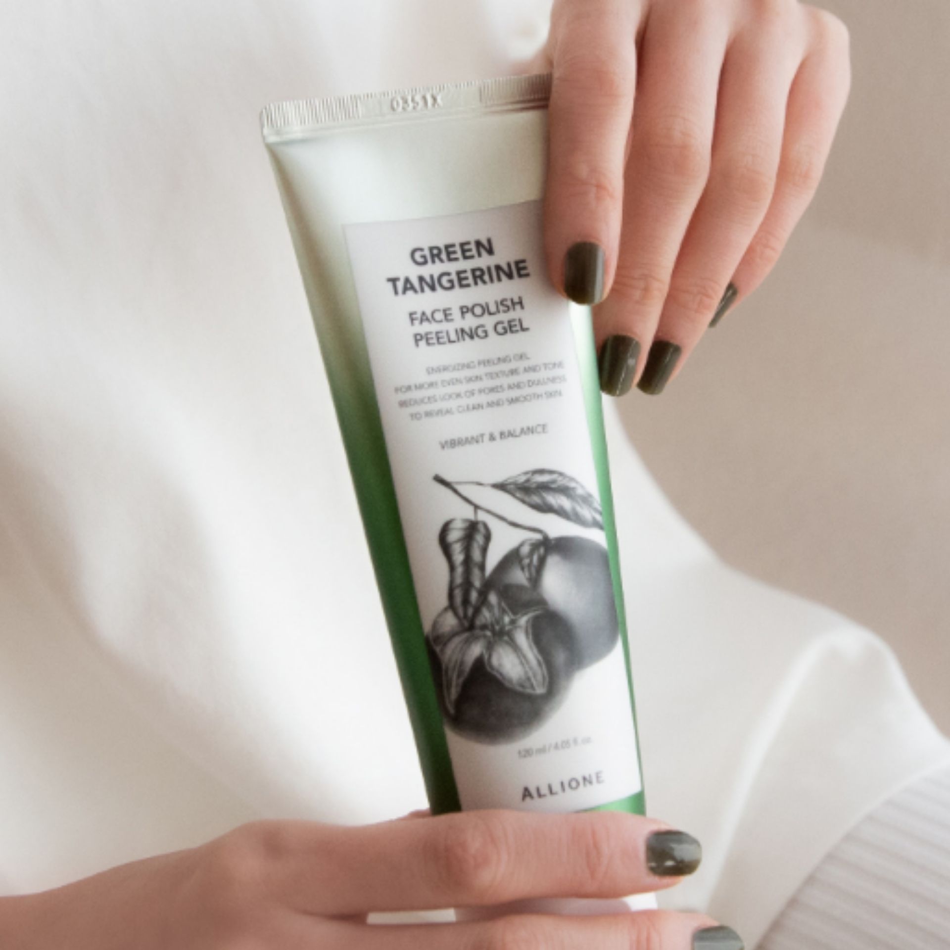 🍊 充滿活力與清爽感:Allione 綠色橘子去角質磨砂凝膠能讓肌膚煥發光彩,變得光滑潔淨。