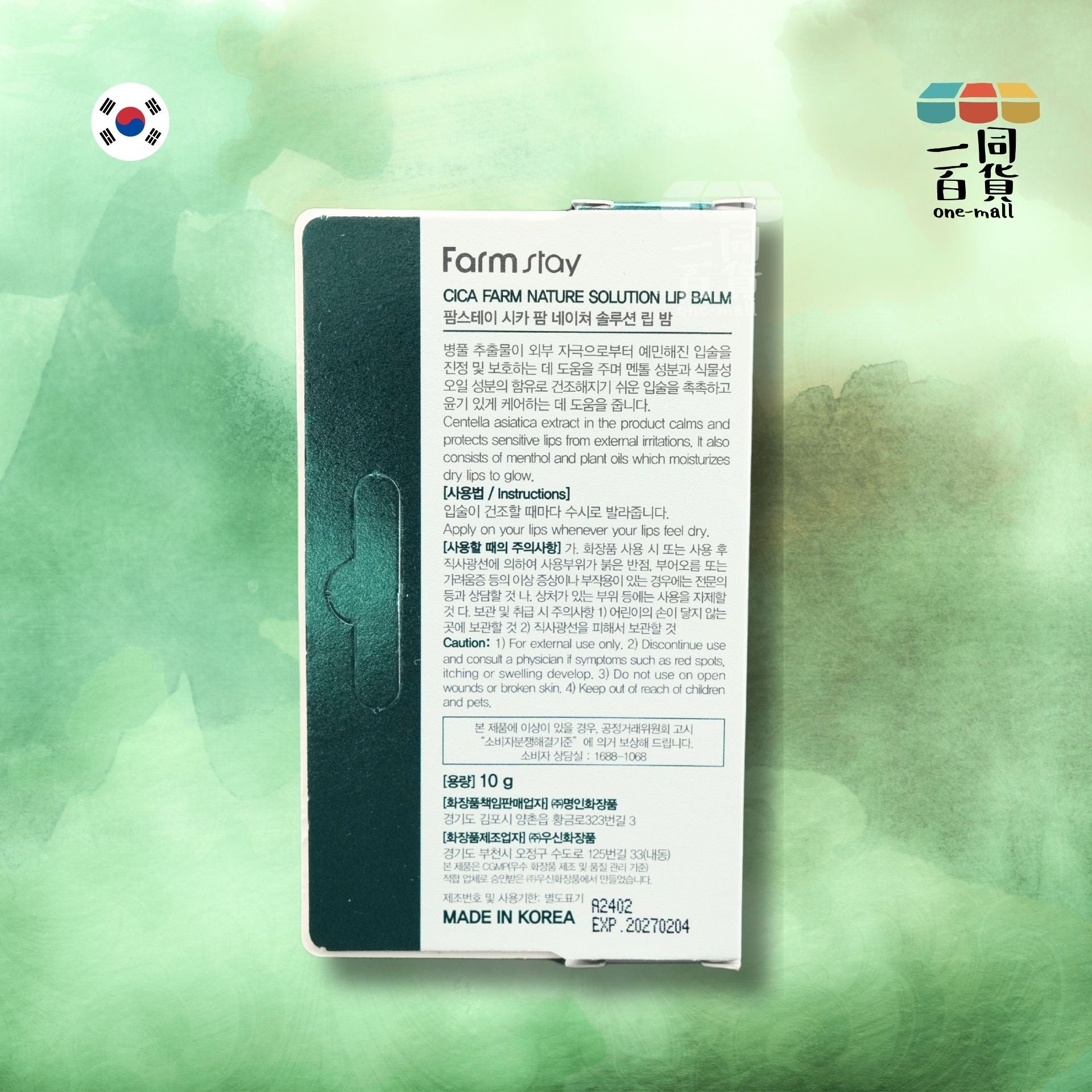 Farmstay | Cica Farm 自然修護潤唇膏 10g (平行進口) B2-1