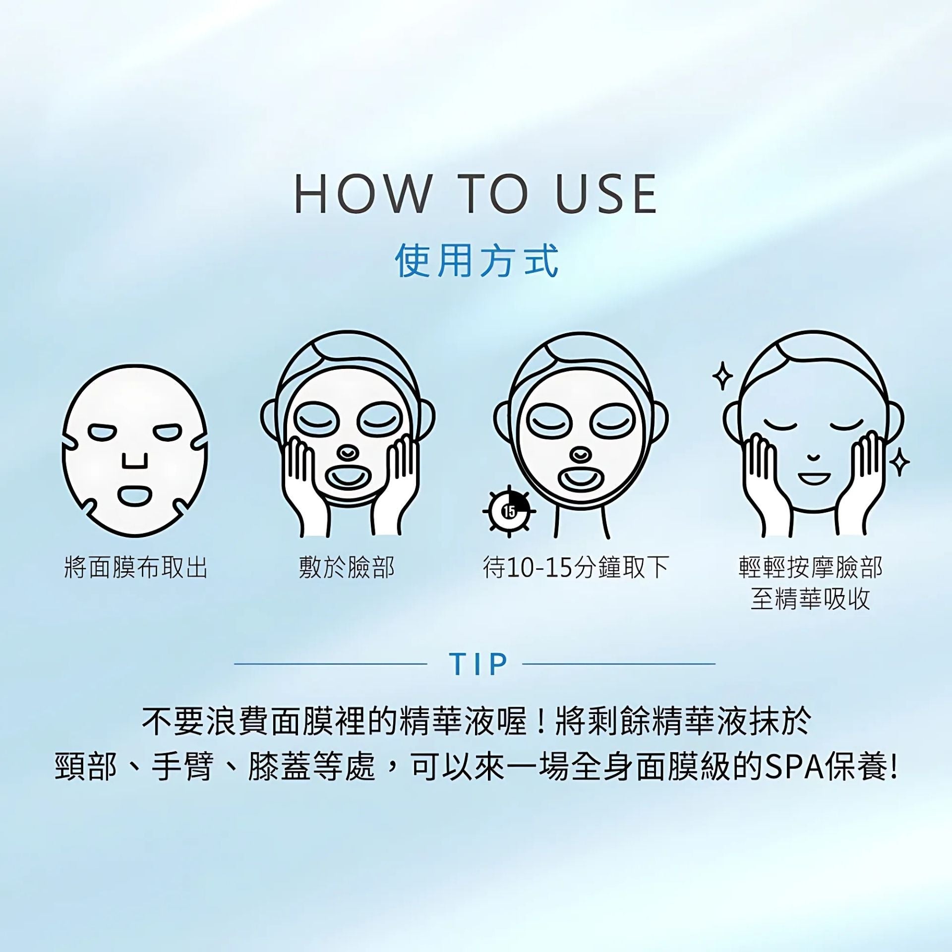 - 清潔臉部後,將面膜均勻敷於臉部。🧹