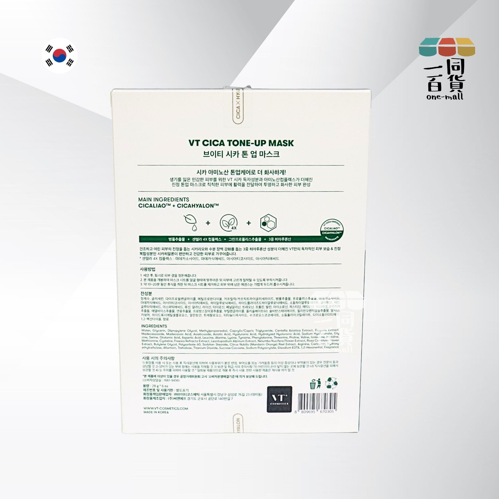 VT | Cica X Hyalon 積雪草提亮美白紓緩老虎面膜 28g x 6ea (平行進口) D413