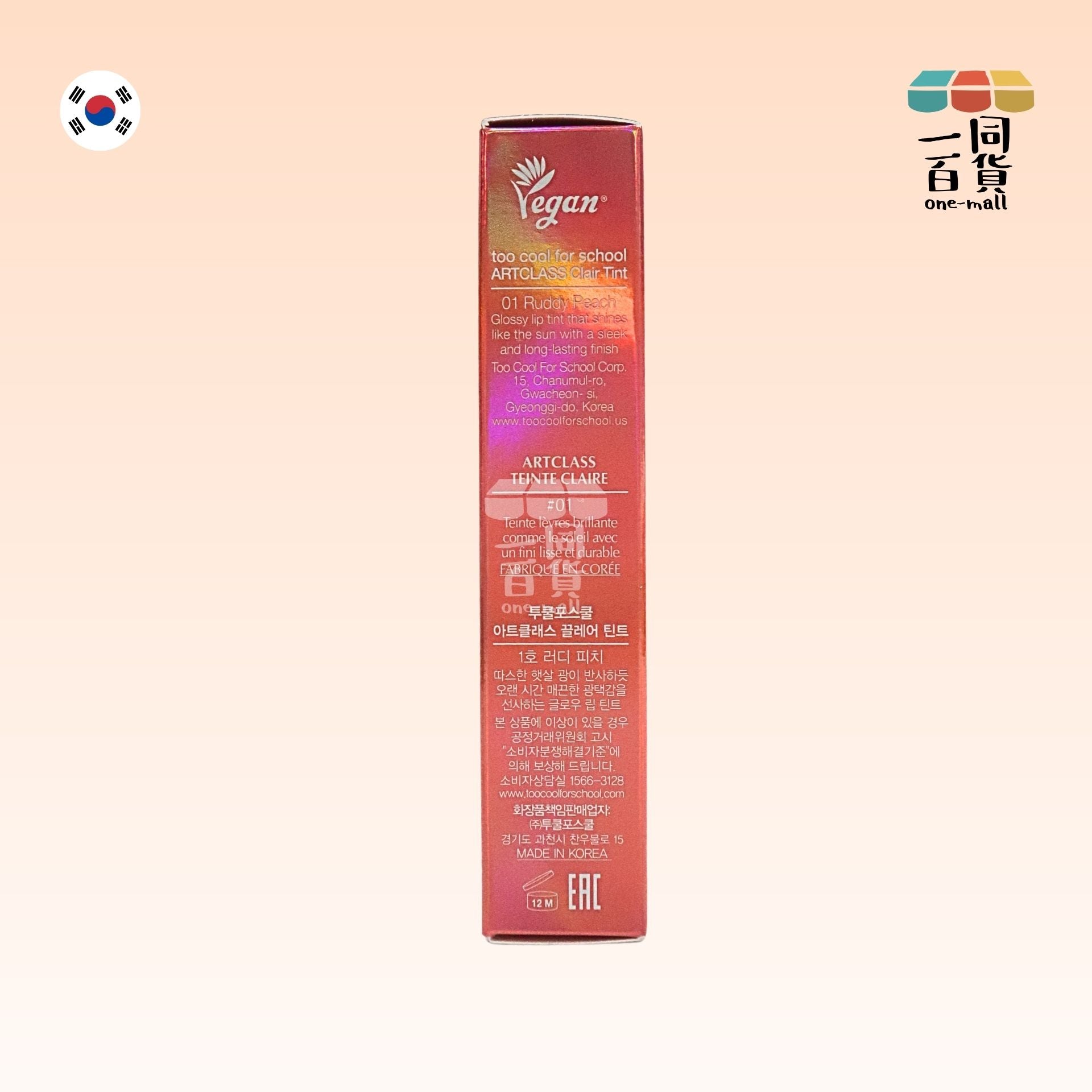 too cool for school | Artclass 水潤光澤唇彩 01 Rudy Peach 4g (平行進口) A825