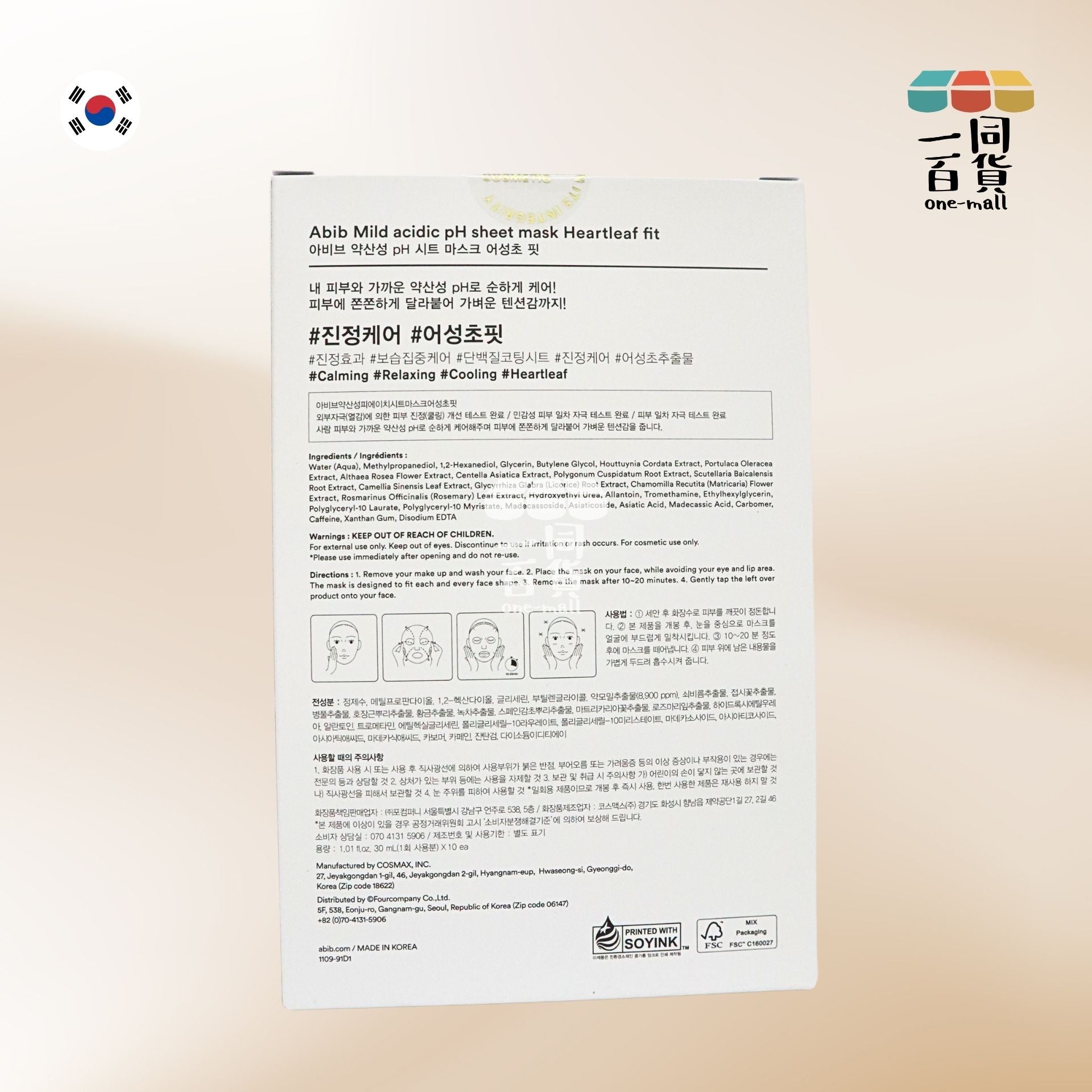 Abib | 弱酸性魚腥草鎮靜面膜 10片裝 (版本隨機發貨) (平行進口) D414
