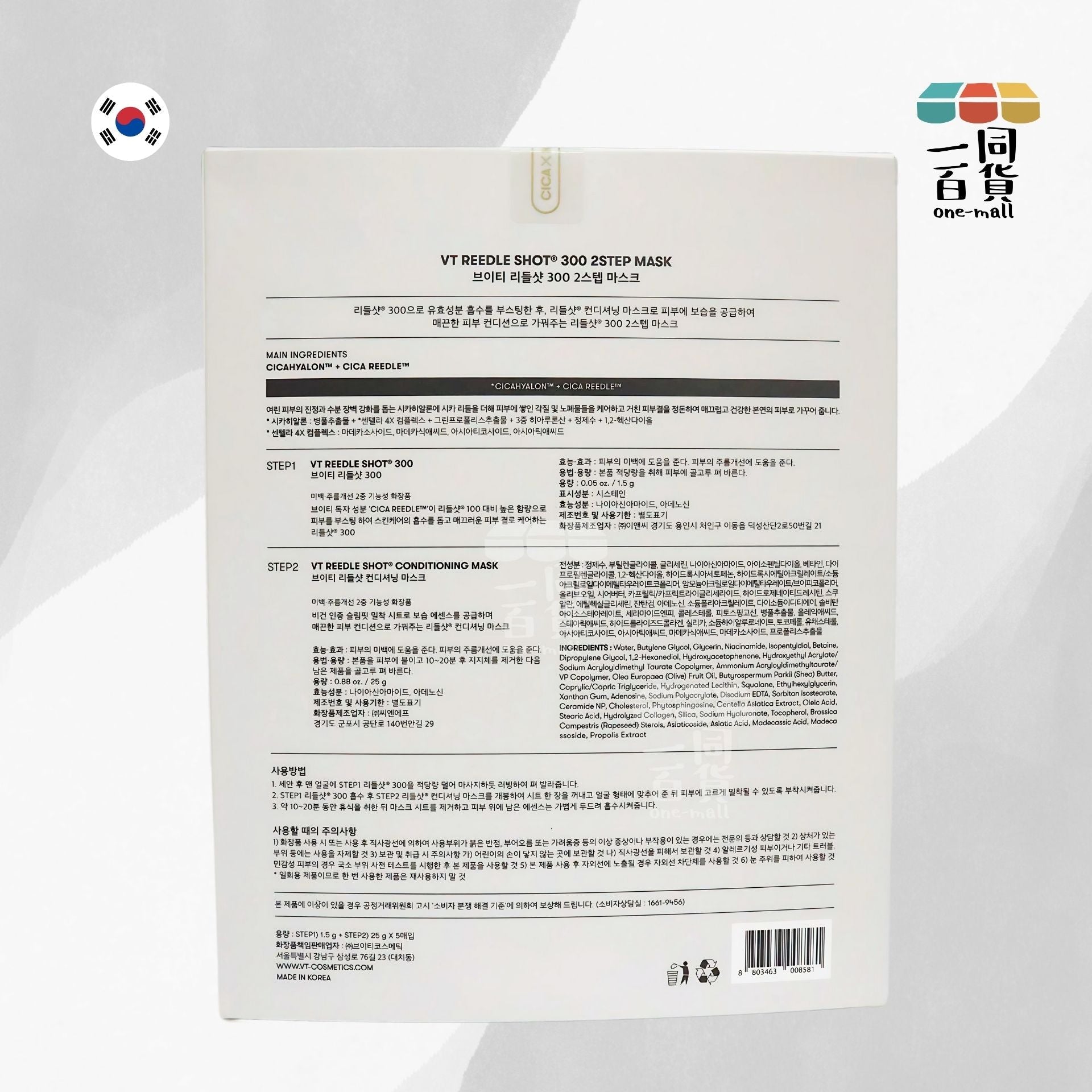 VT | [1盒]范特 積雪草微針精華300 2Step 面膜 5片[包裝隨機](平行進口) C318