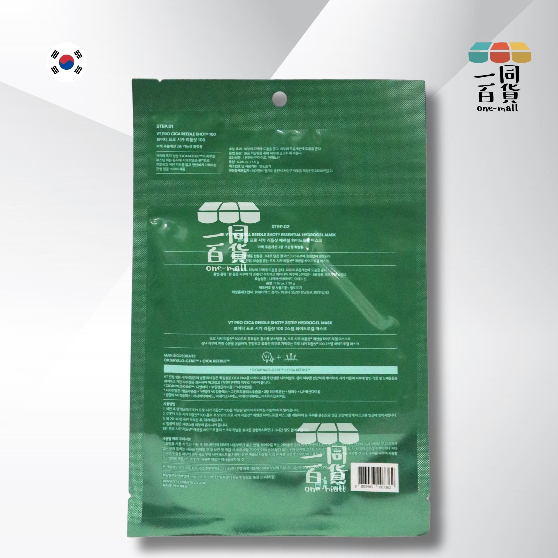 VT | [1片] 二合一積雪草舒緩修護微針精華 100 2-Step水凝膠面膜 1片 [綠] (平行進口) A714