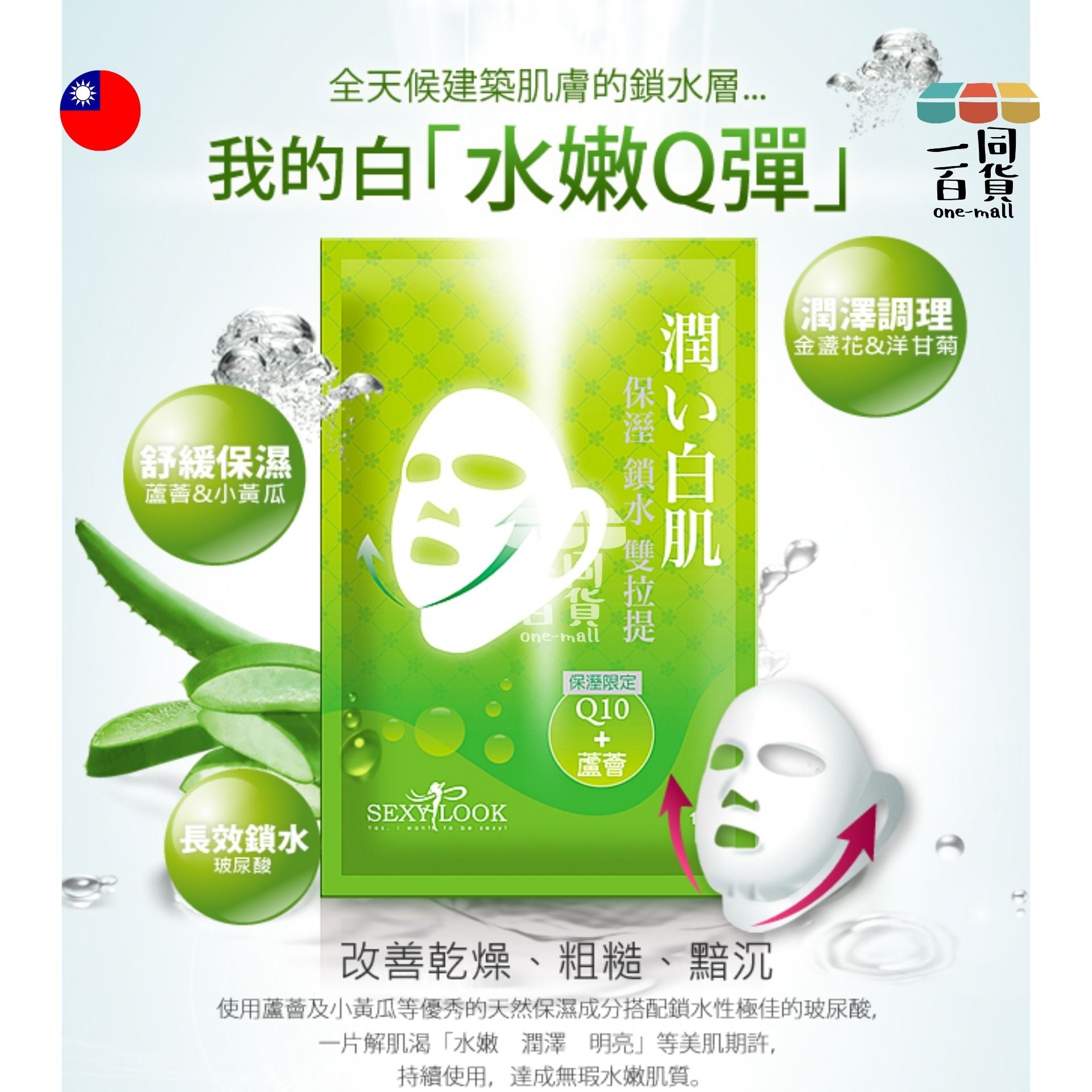 SEXYLOOK | [1片] 高效保濕雙耳掛面膜 1片入 [綠] (平行進口) C311