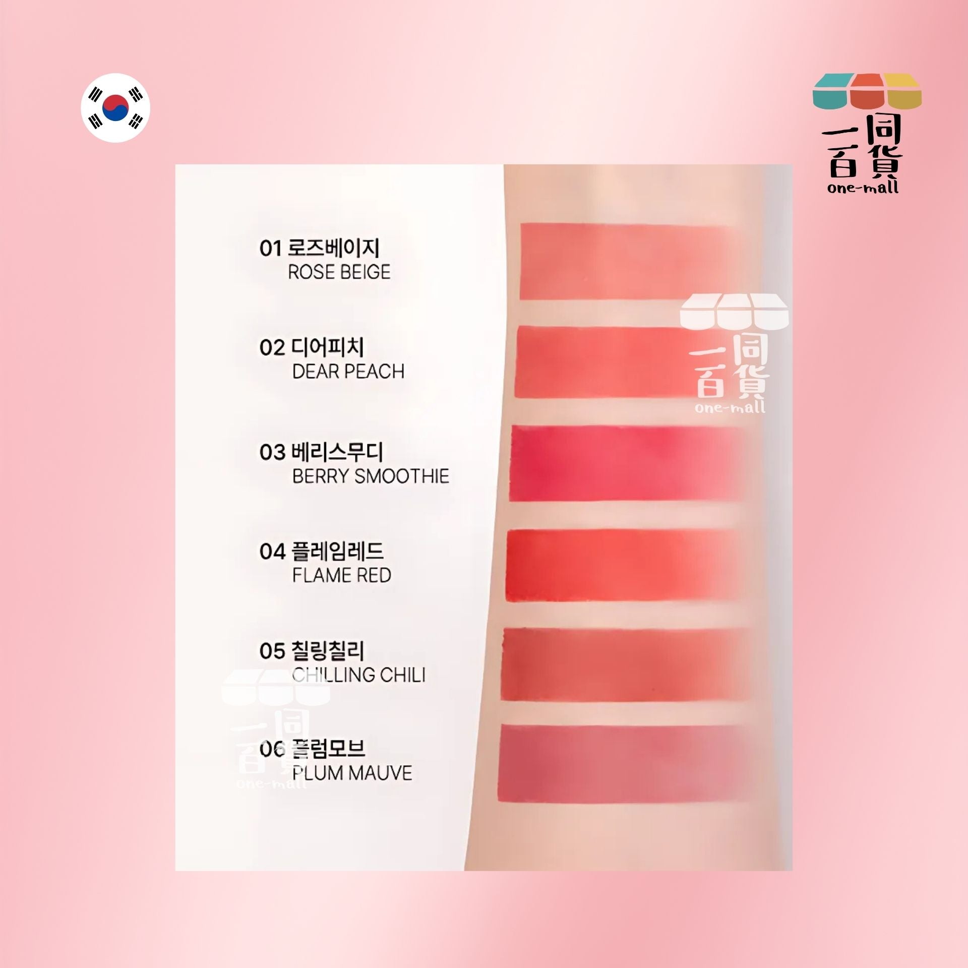 - 輕輕塗抹於雙唇,如需更飽滿色澤可多次上色;One Mall建議先用唇部打底增強服貼度 💪