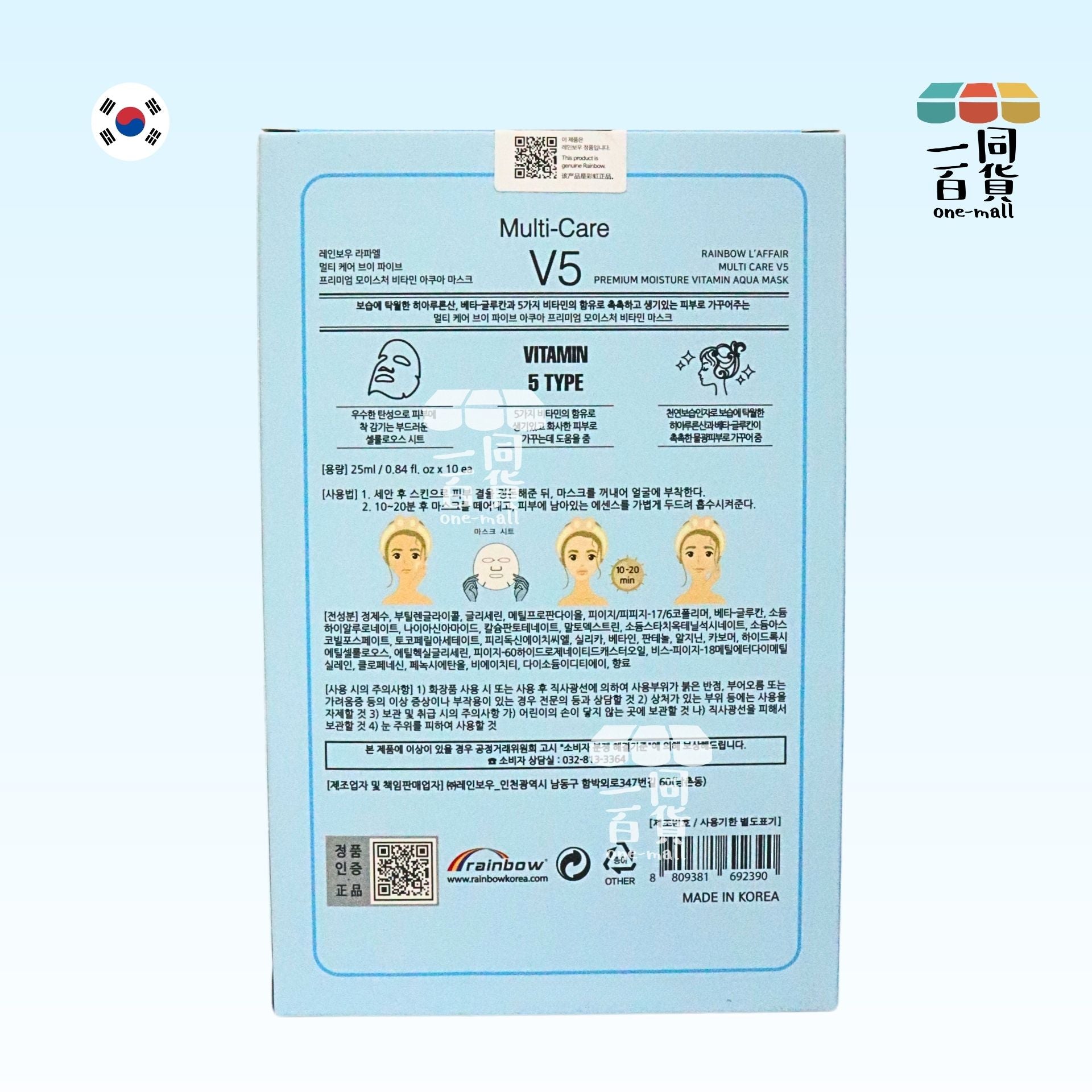 RAINBOW L'AFFAIR | [1盒] RAINBOW L'AFFAIR - 韓國V5維他命深層補水彩虹面膜 [藍色] 10片(平行進口) B113