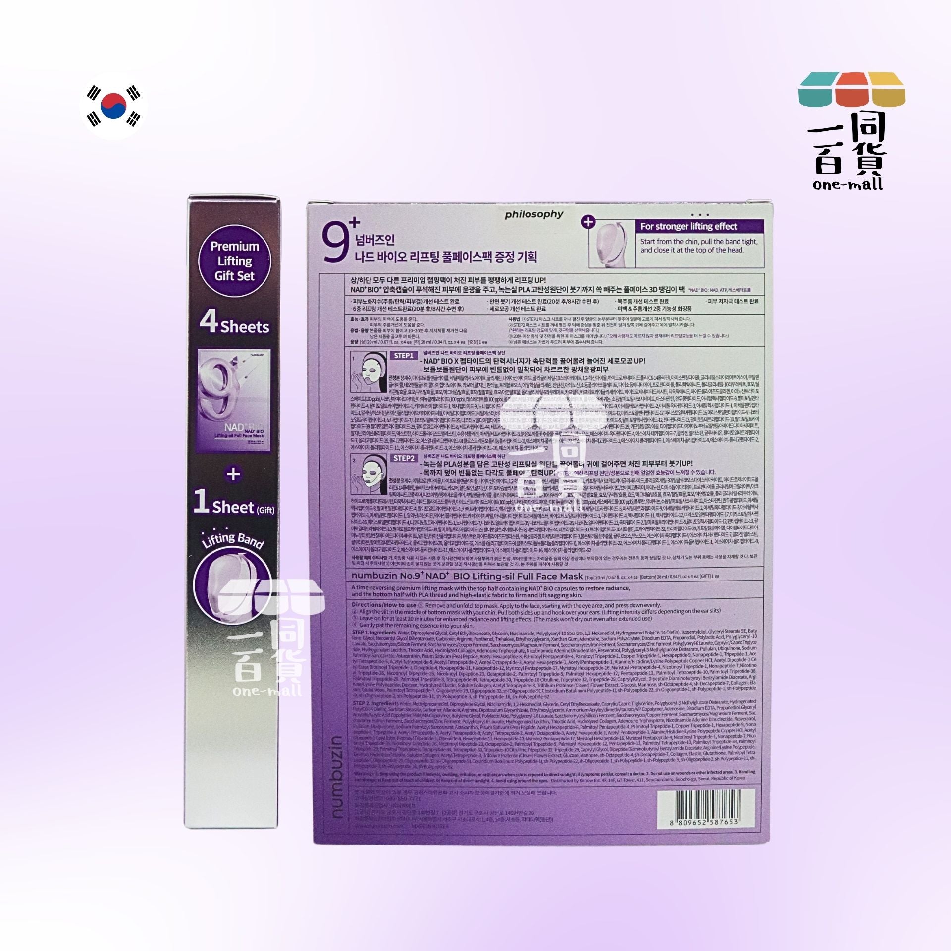 numbuz:n | numbuzin No. 9 NAD+ Bio Lifting-sil 全臉面膜 4片 A719 (+Fabric Lifting Band)[紫盒][隨機包裝](平行進口)