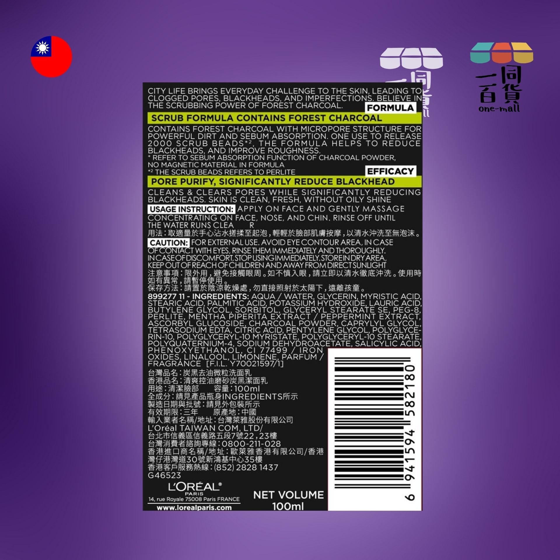 L'Oréal Paris | Men爽控油磨砂炭黑潔面乳 100毫升 (洗面膏) (平行進口) A332