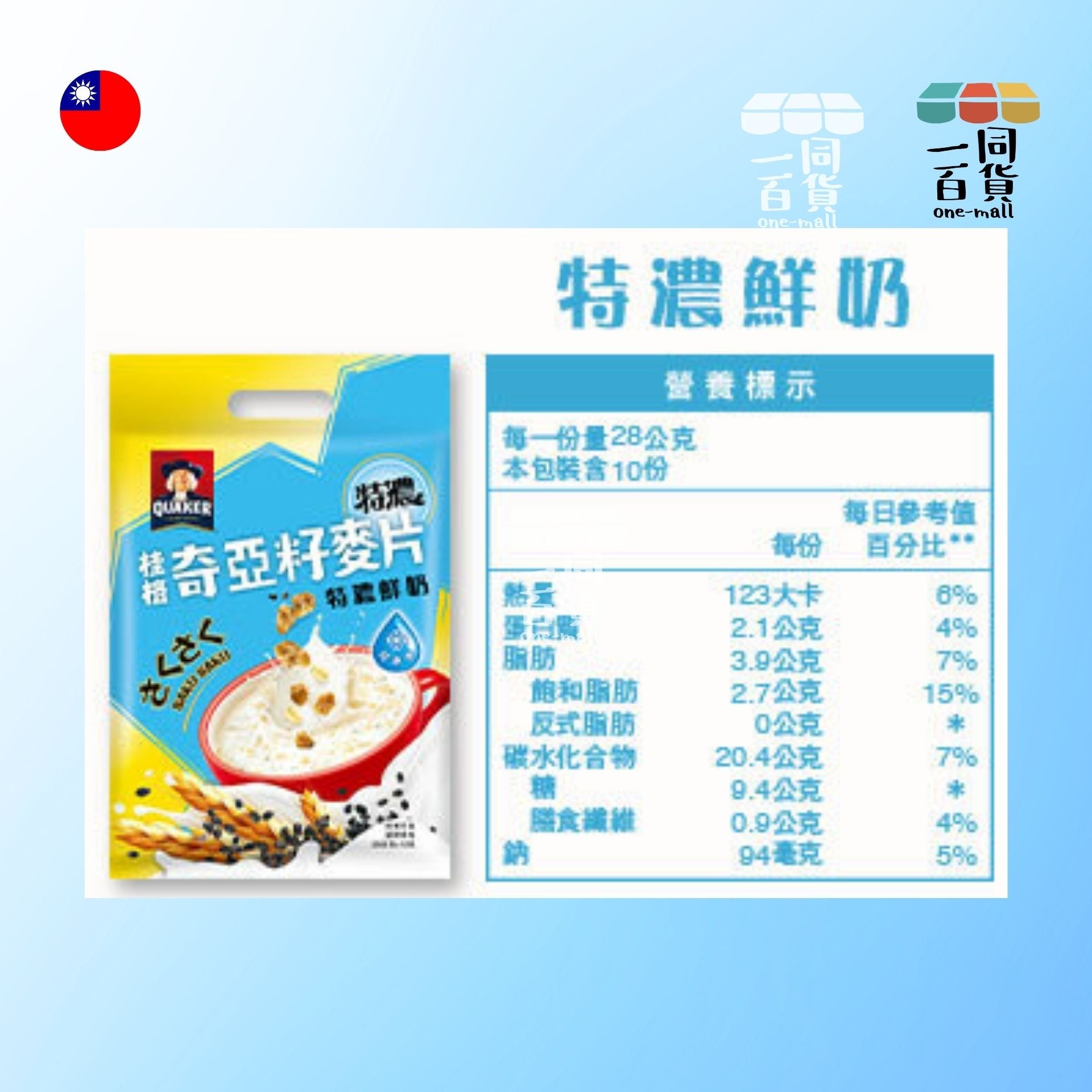 - 無需繁複烹煮 居家或辦公皆適宜 💻- 這款濃郁奶香麥片融合奇亞籽 偏向顺滑口感 適合早餐與下午茶時段 加入熱水後攪拌至自己喜歡的濃稠度 若發現結塊無法攪散 建議重泡 One Mall 建議包裝豎放 減少粉末傾洩風險 🧑