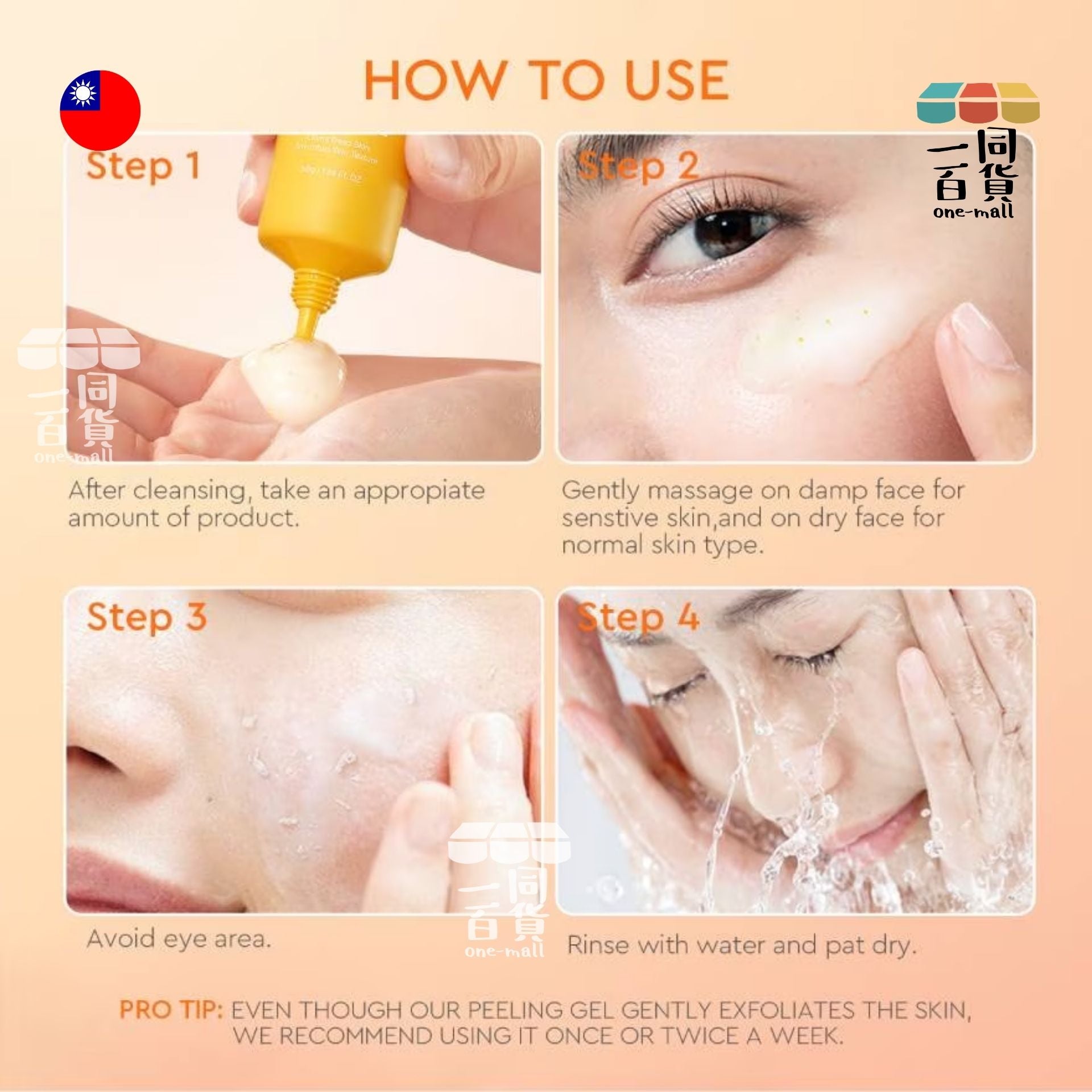 - 使用方式: 一週使用一至兩次 用溫水沖乾淨後繼續後續保養