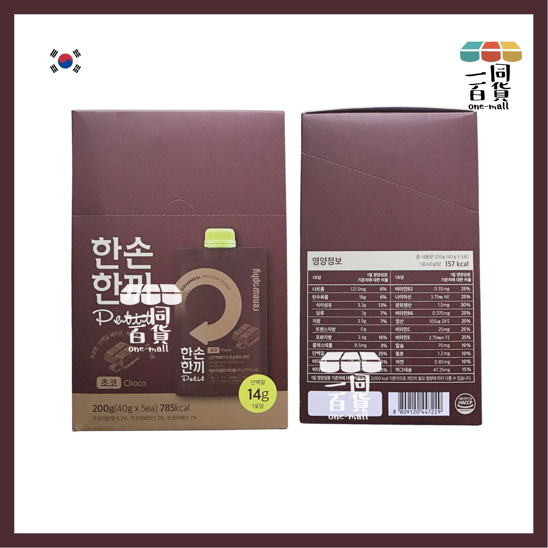 Renew-phy | [5包] 韓國 人氣爆紅PETIT RENEW PHY 朱古力奶昔 5包 (平行進口) F8-4 [啡盒]